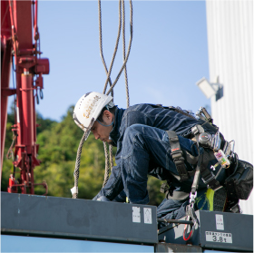 重量物据付工事やプラント建設工事の現場においては、事故や災害を未然に防ぐ体制が重要となってきます。当社は安全管理に関しても高い意識を持ち、現場業務にあたっています。